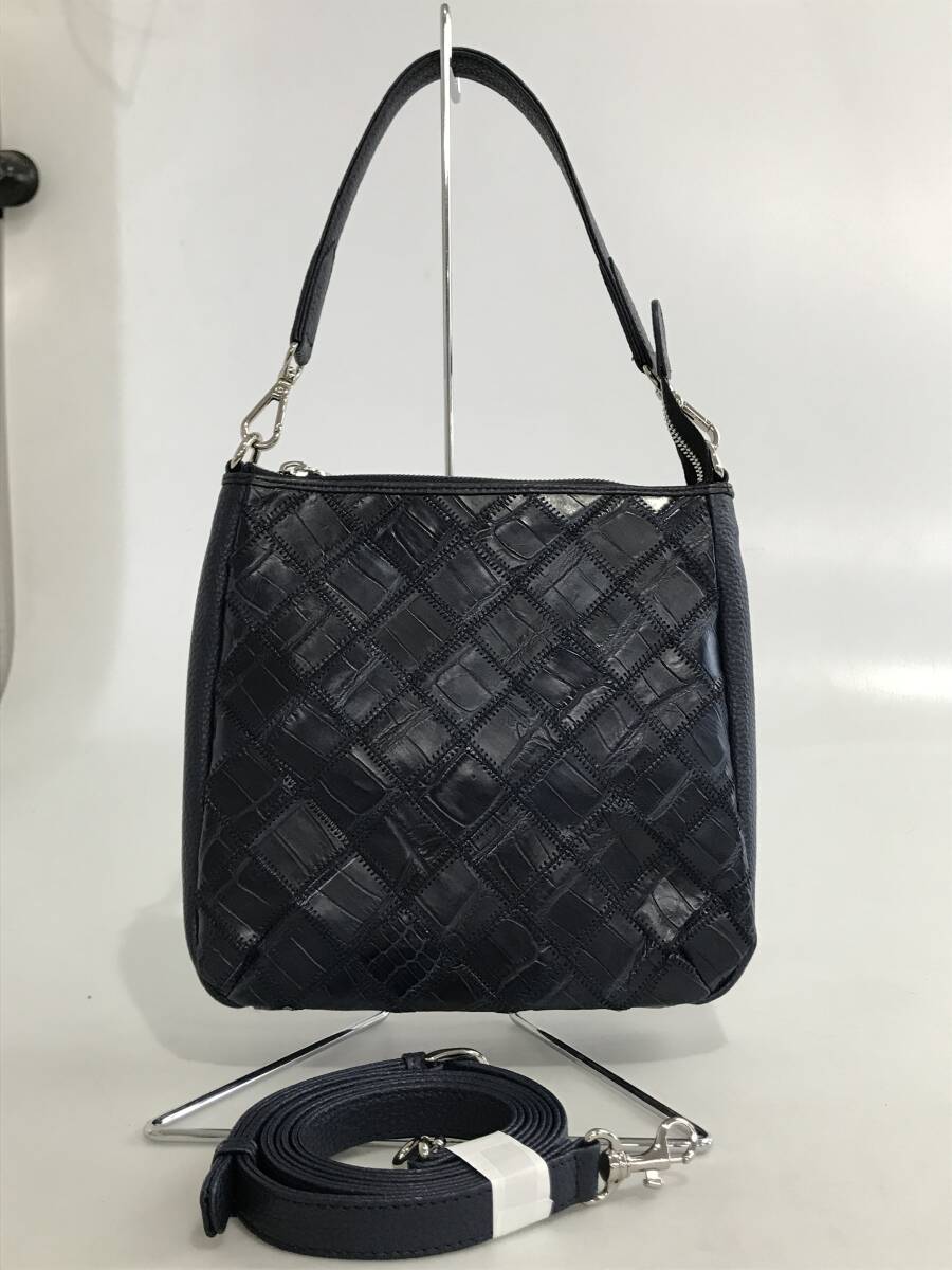 > HG7341 本革 クロコダイル パッチワーク ハンドバッグ ショルダーバッグ 2way ネイビー系 ショルダーベルト付き 鞄 レディース