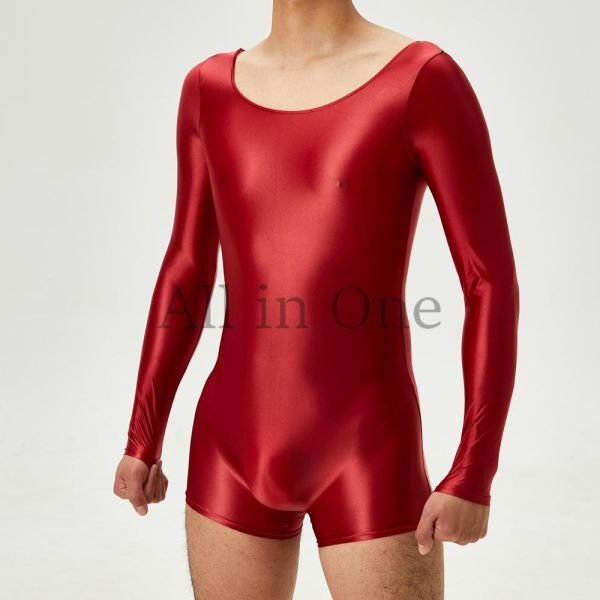 - 135-164-26 ツヤツヤ 光沢 シルキー ボクサー ロングスリーブ【レッド,L】男性 メンズ コスチューム セクシー コスプレ ランジェリー.1
