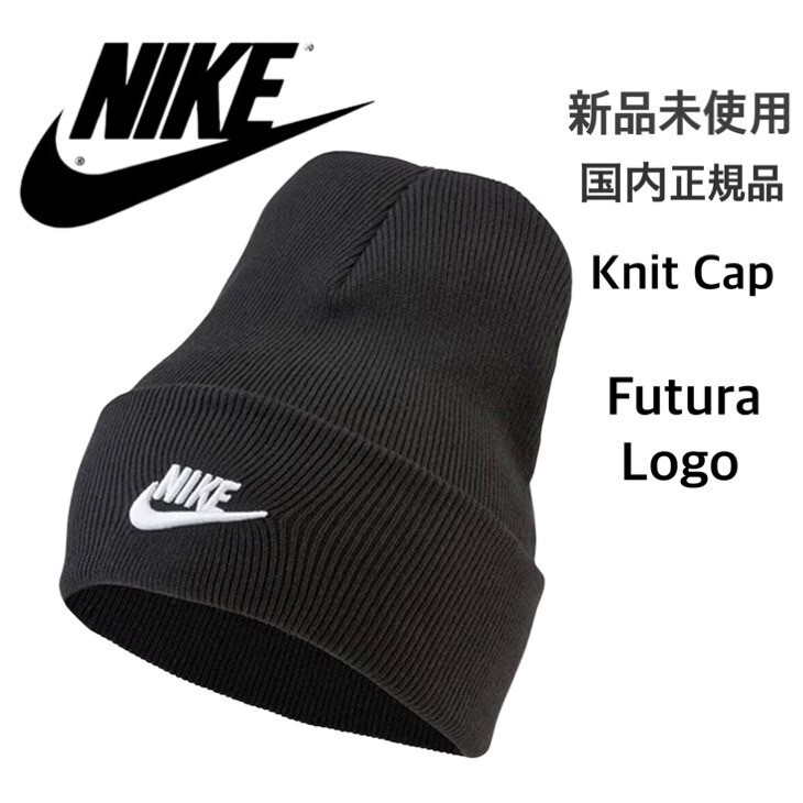 - 新品未使用 ナイキ刺繍ロゴ ニットキャップ 黒 男女兼用 ピーク ビーニー 国内正規品 NIKE ブラック ニット帽 dj6224 直営店購入品
