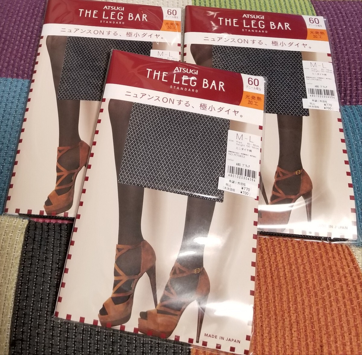 > ATUGI アツギ THE LEG BAR M-Lサイズ ミニダイヤ柄 60デニール 光発熱加工 タイツ 3足セット 新品未使用品