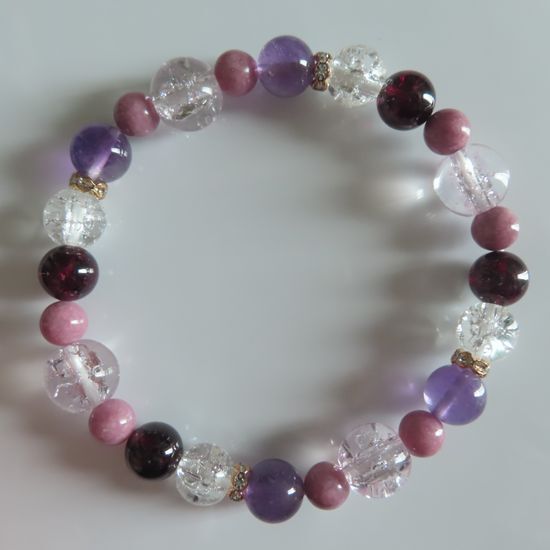 - 送料無料、ガーネット、アメジスト、ロードナイト、クラック水晶のブレスレット