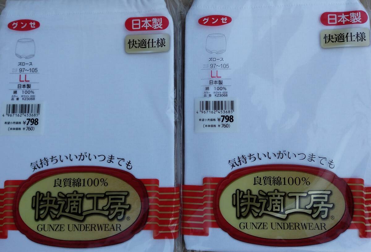 - ズロース GUNZE グンゼ 快適工房 サイズLL ホワイト 2枚 綿100% 未使用 未開封 日本製