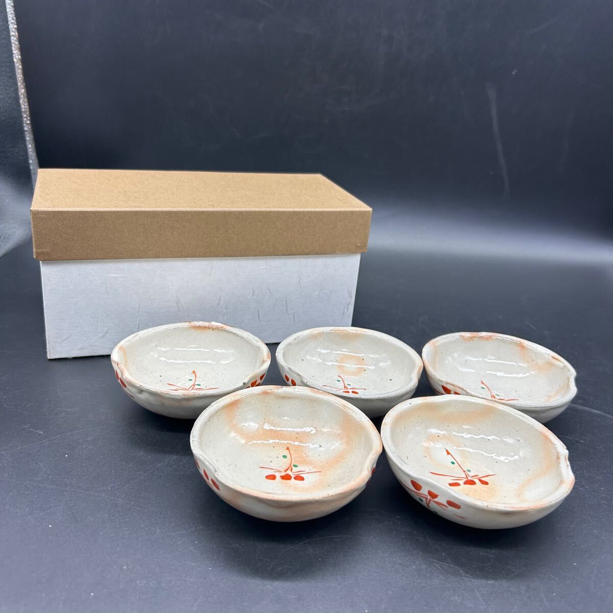 - 小皿 小鉢 粉引赤絵 きようの食器 和食器 陶器製 ツ16