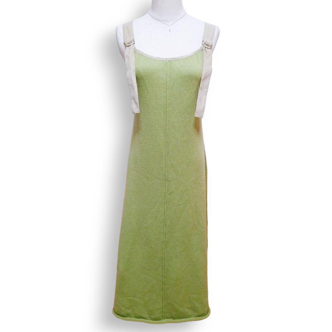 > 神戸レタス KOBE LETTUCE みーちゃんコラボ 異素材切替 ニットワンピース ジャンスカ バックリボン ロング フレア レディース F グリーン系