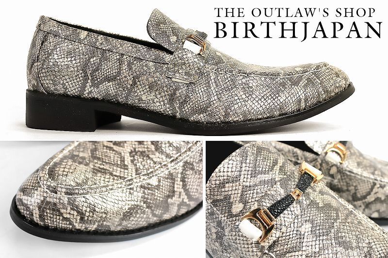 > 蛇柄 トンガリ ローファー グレー 短靴 メンズ シューズ ファッション オラオラ系 悪羅悪羅系 お兄系 メンナク ホスト 派手 105