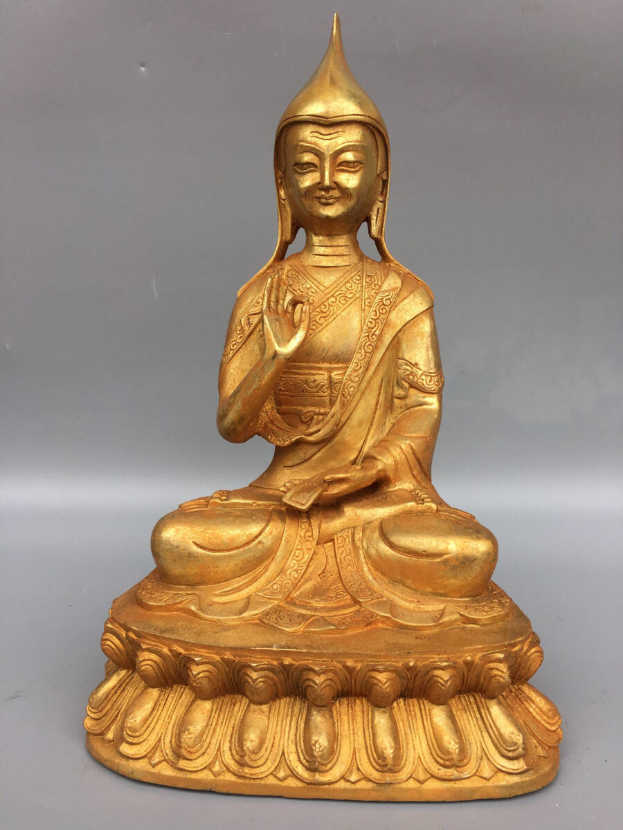 - 【仁】『銅製・塗金・上師像・仏教古美術・供養品』極細工 古賞物 中国古玩 古美術 古美味