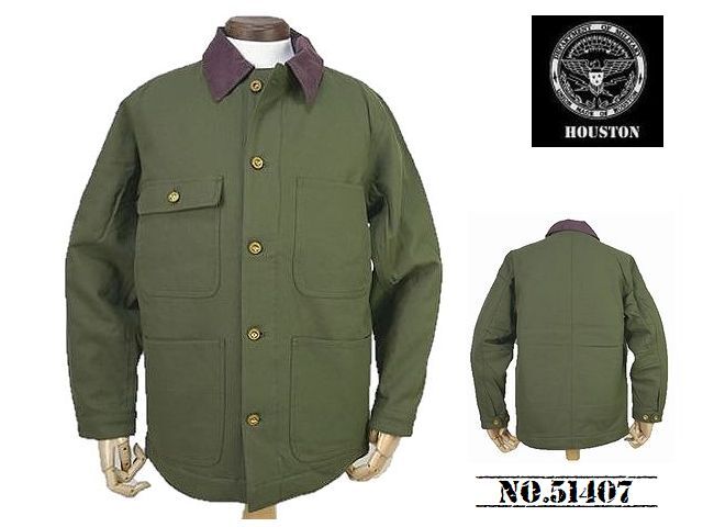 - 【送料無料 30%OFF】HOUSTON ヒューストン 裏キルティング ソリッドビエラ カバーオール NO.51407 OLIVE_Mサイズ