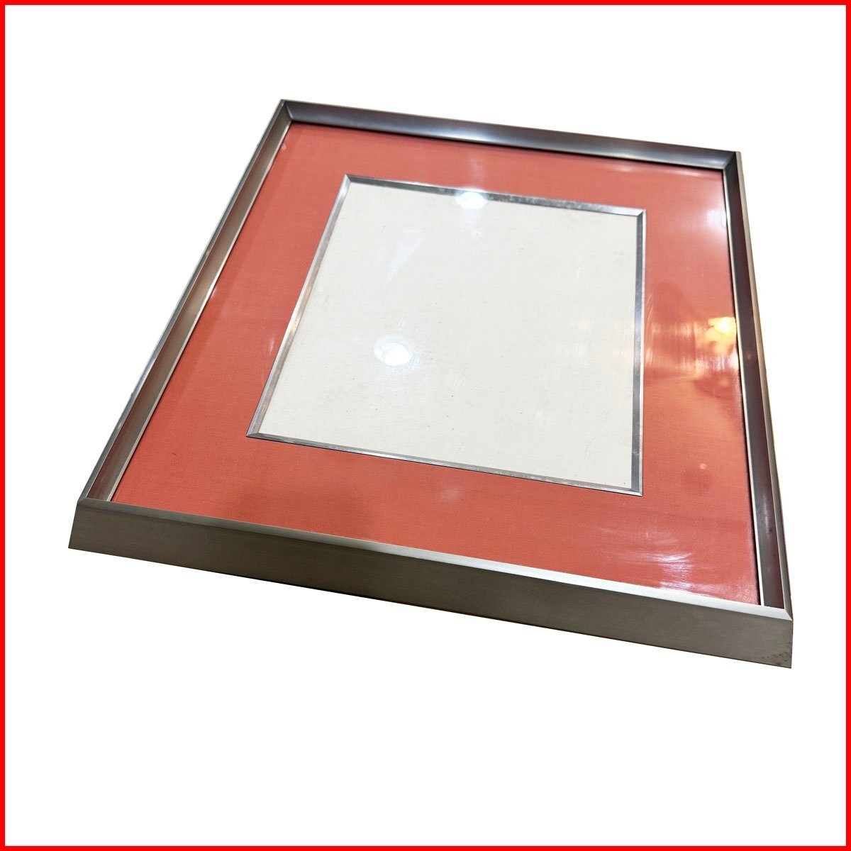 - 中古●額縁 アルミフレーム●ガラス板 シルバー 展示フレーム 色紙 ややスレあり 外寸約42×45×4㎝ 書道作品/絵画などに 札幌 110F