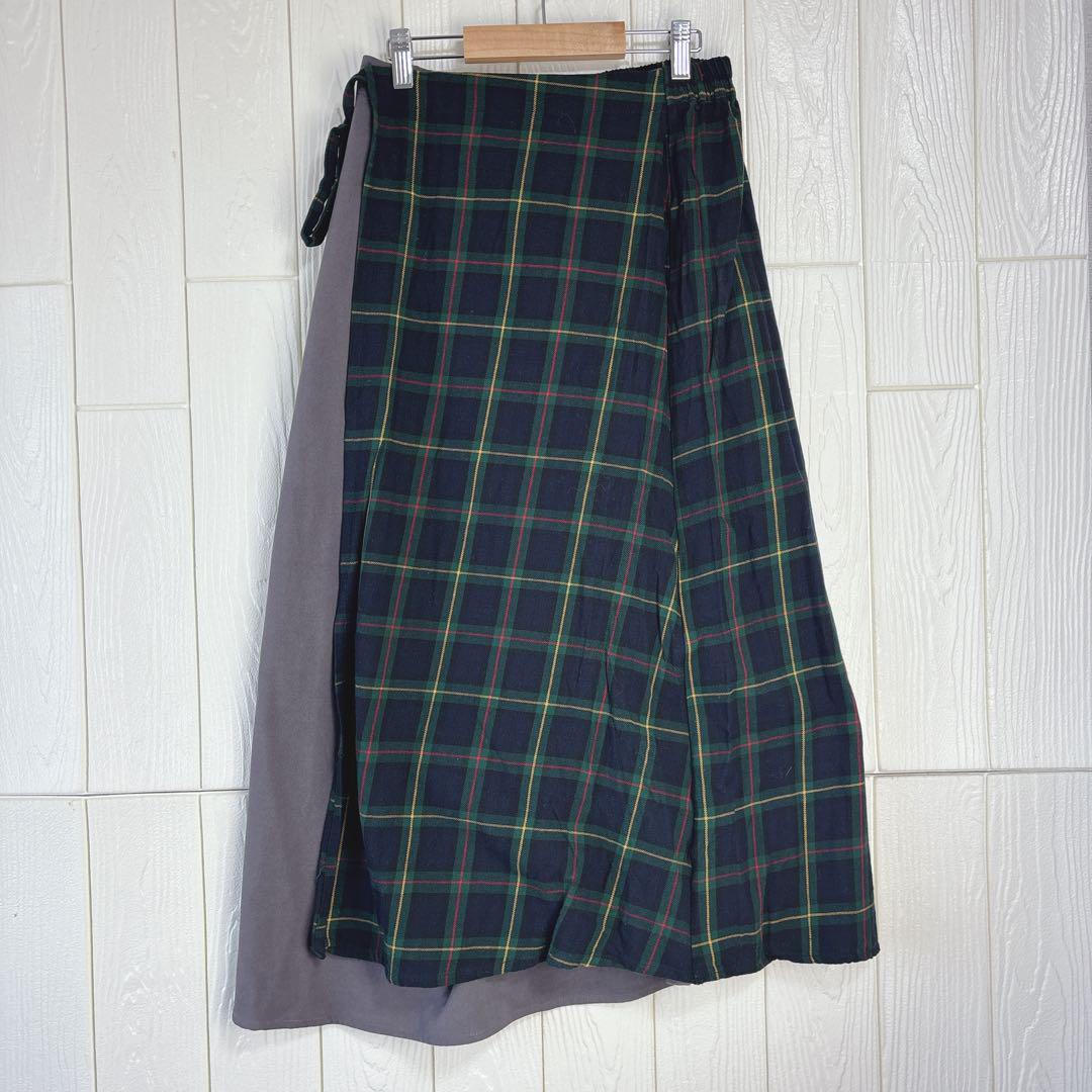 - チェック柄ラップスタイルロングスカート コンビスカート フリー