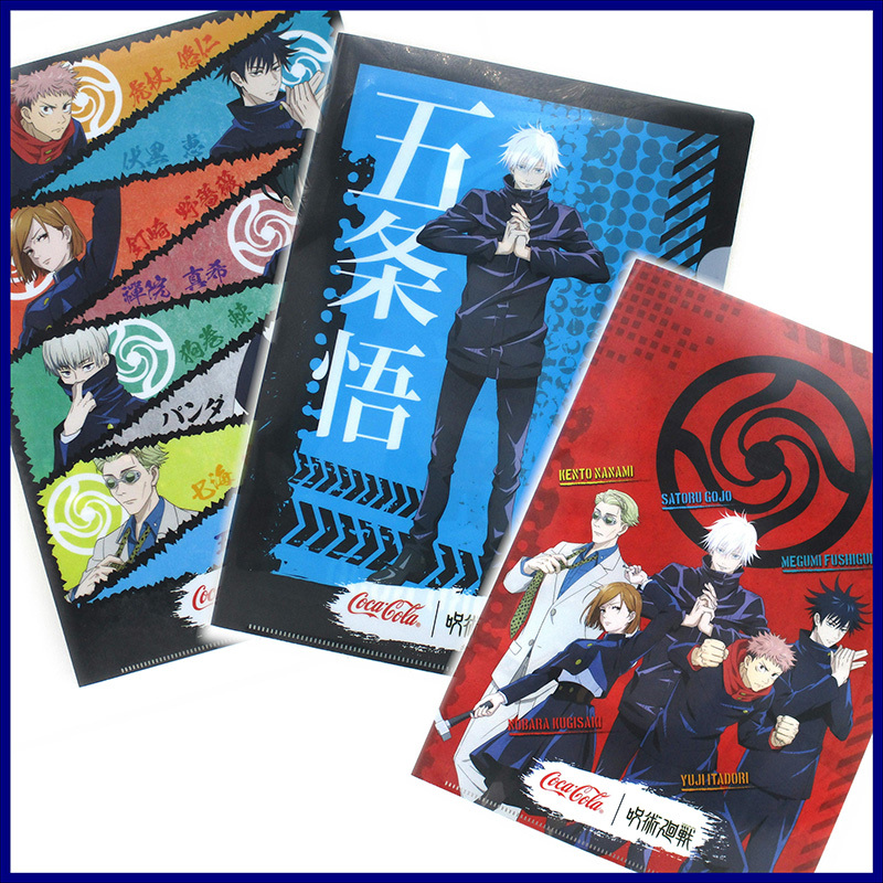 - 呪術廻戦 コカコーラ クリアファイル A4 ◆ 虎杖悠仁 伏黒恵 釘崎野薔薇 狗巻棘 パンダ 七海建人 五条悟 非売品 / 3点 Used