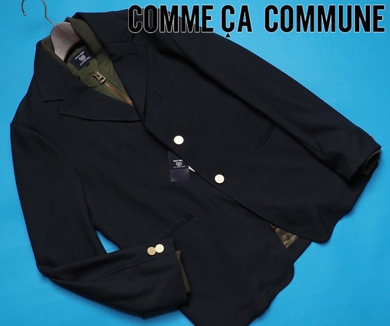 > 新品定価2.9万円 COMME CA COMMUNE コムサコミューン メタルボタン フェイクレイヤード ジャケットM紺(09) 33JA03