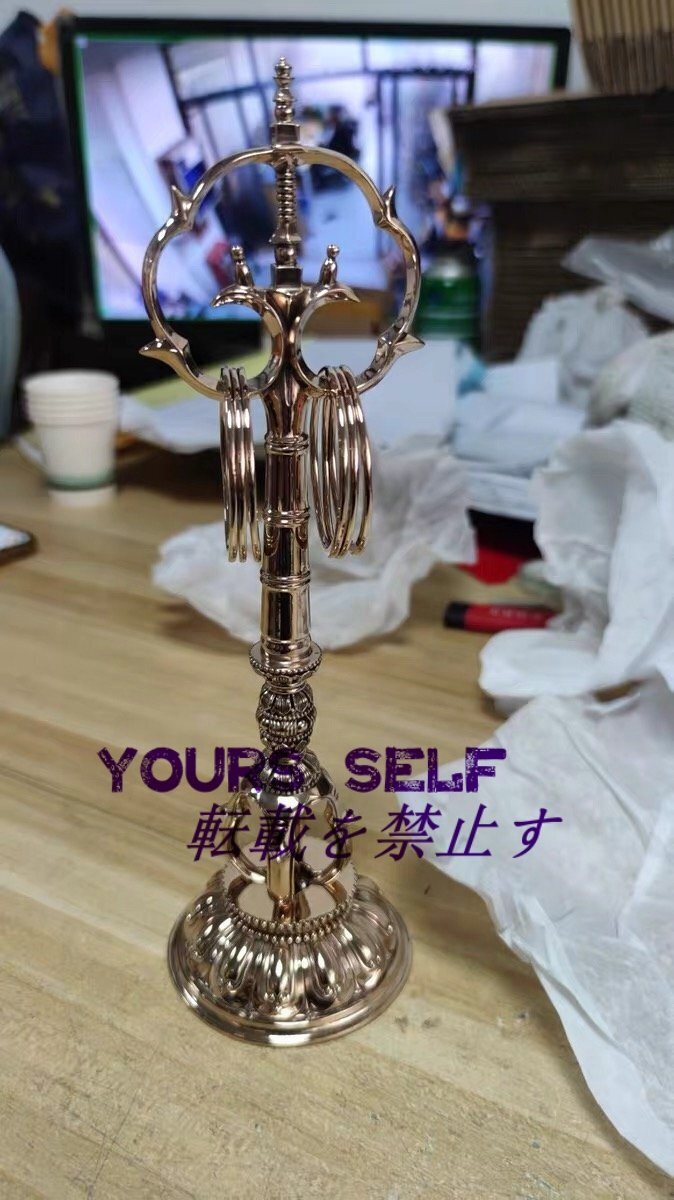 - 錫杖 密教法具 寺院用仏具 禅杖 法杖 声杖 鳴杖 錫杖 仏具 お守り 修験者 台座付き