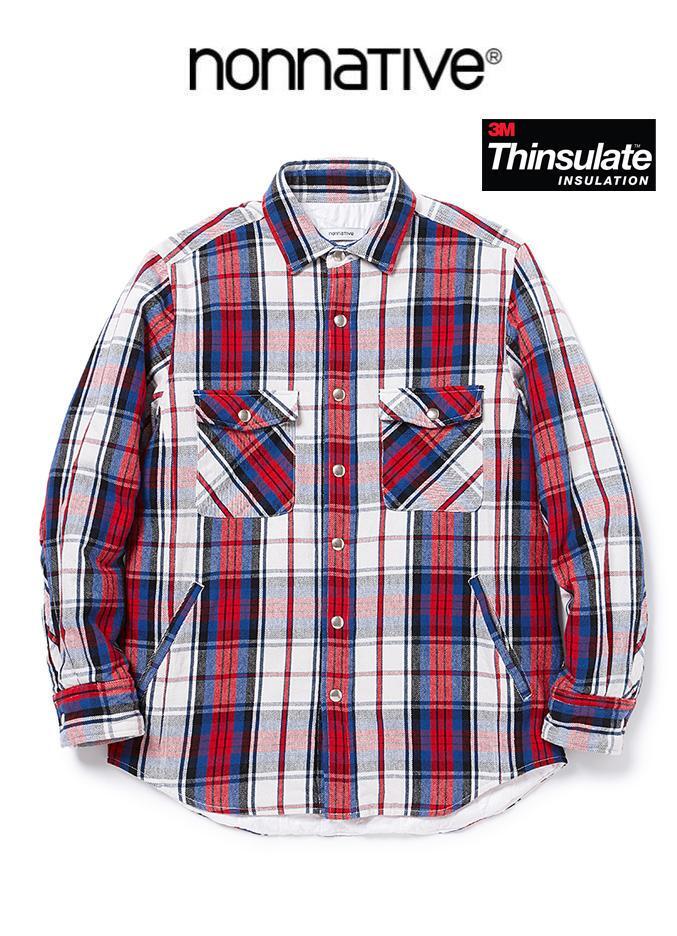 > 美品 定価6万■nonnative WORKER PUFF SHIRT JACKET COTTON TWILL PLAID 1 シンサレートシャツジャケット ネルシャツ ライトアウター