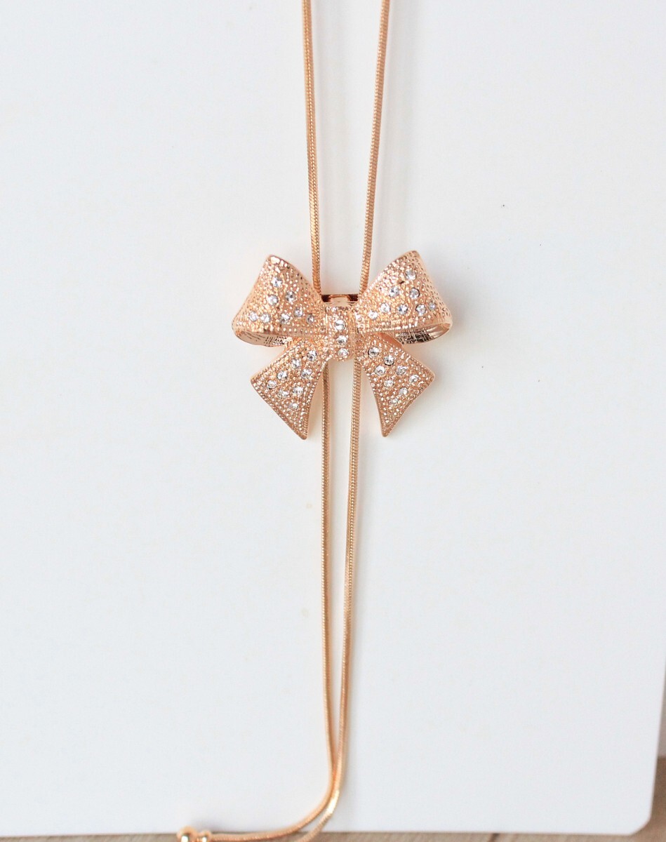 - キラキラリボン・Y字・ロングネックレス・k18ピンクゴールド色