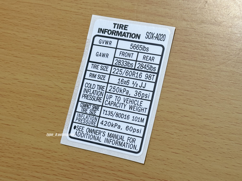 > USホンダ 02-04 HONDA ODYSSEYオデッセイ タイヤ スペック コーション ラベル USDM北米JDM LAGRET 後期RL1系ラグレイト