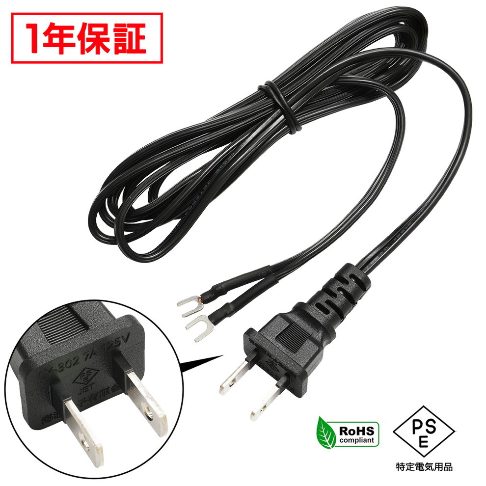 - 電源ケーブル ACケーブル 3m Y形裸圧着端子 PSE適合 RoHS対応 安心の1年保証