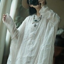 - OHJ1519★人気 ロングシャツ カーディガン 羽織物 アンティーク風 洋服ミックス ロマンファッション 麻100%リネン ベージュ系