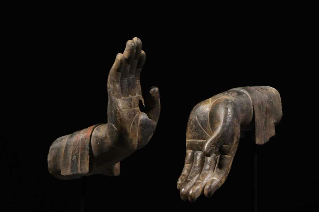 - ▼渡鶴羽▼P904北斉時代 青石仏手 无畏印 青石細工彫刻★仏教古美術★仏像★細密細工★廃寺旧蔵★廃寺買出品