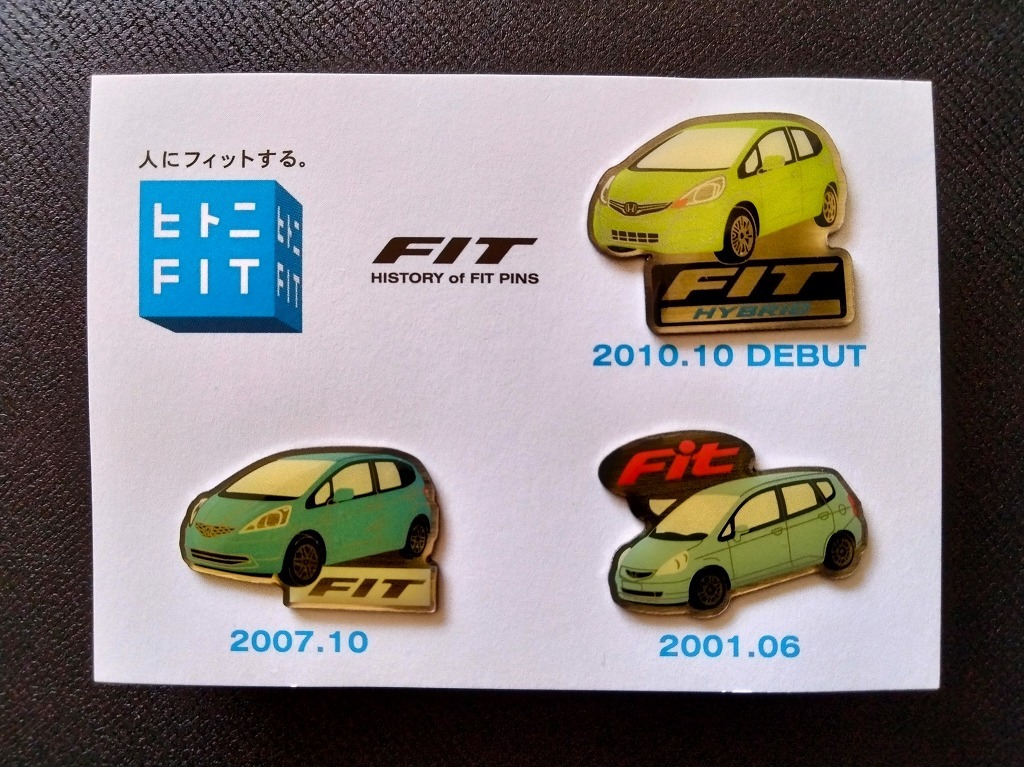 - ホンダ フィット 販促非売品 ピンバッジ 3p ケース入りセット 未使用 当時品 !! ☆ HONDA FIT & FIT HYBRID ピンズ ピンバッチ ヒトニFIT