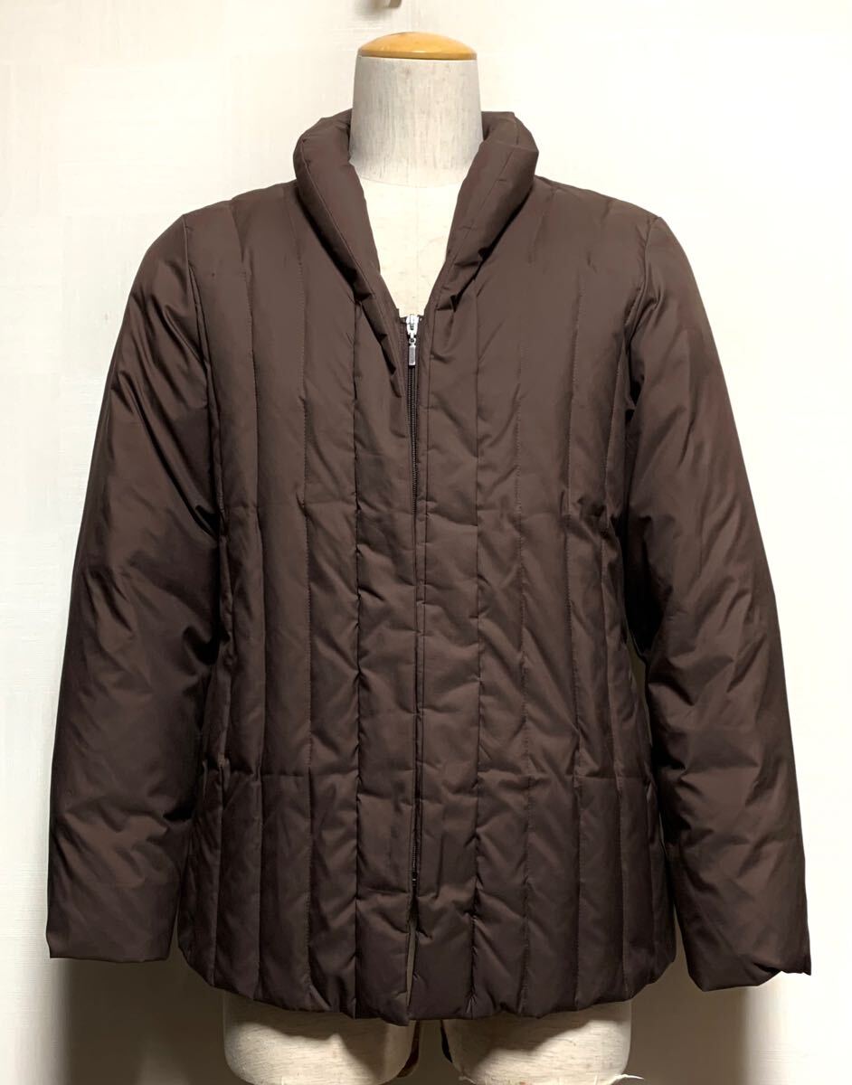 - 極上:MARSA(マーサ/レナウン 取扱).ショールカラー ダウン ジャケット F(L位/茶/ジップ開/肩42幅52丈70/ハンテン/西川/uniqlo nishikawa)