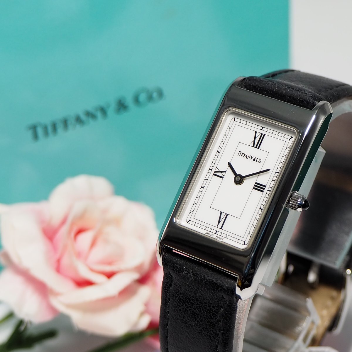 ★★★★ ティファニー TIFFANY&CO スクエア 純正革ベルト レディース 腕時計 箱 F338 中古★★★★