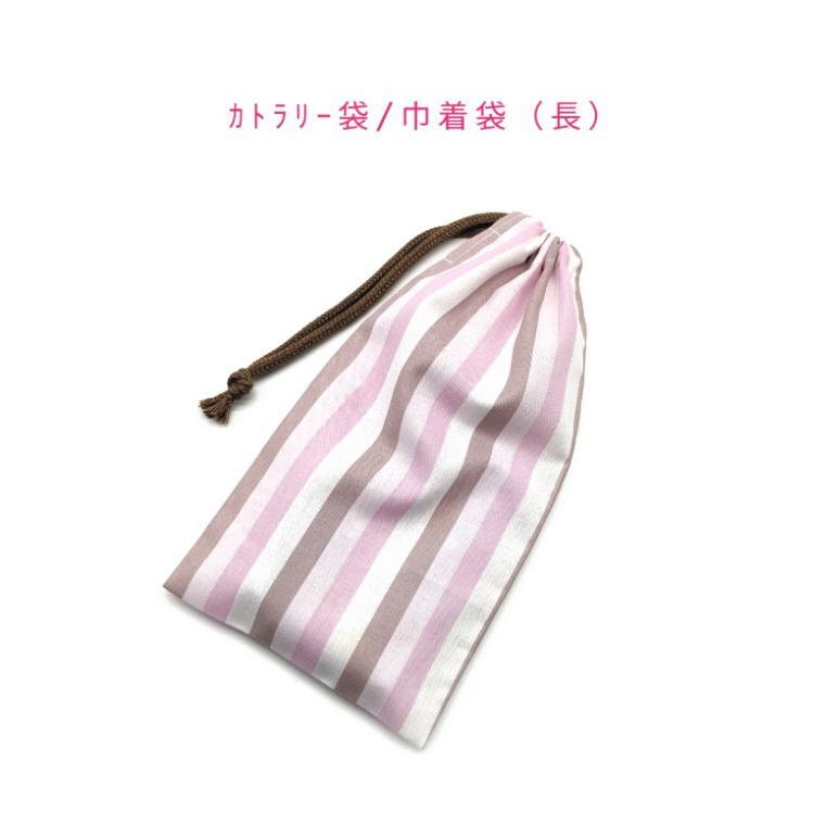 > カトラリー袋・巾着袋 長方形【マシュマロストライプ柄 ピンク】カトラリーケース 箸袋 はし袋 コップ袋 給食袋 ポーチ ゆめかわ シンプル