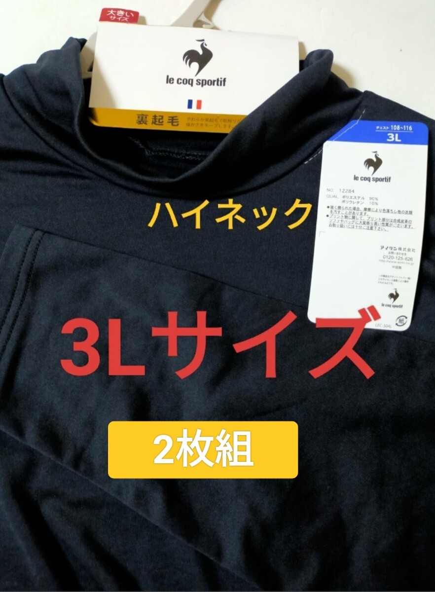 - 3Lサイズ!2枚組 !lecoq ルコック メンズ 暖かい 裏起毛!ストレッチ ハイネック シャツ ゴルフ GOLF ウェア インナー【無地 ブラック】