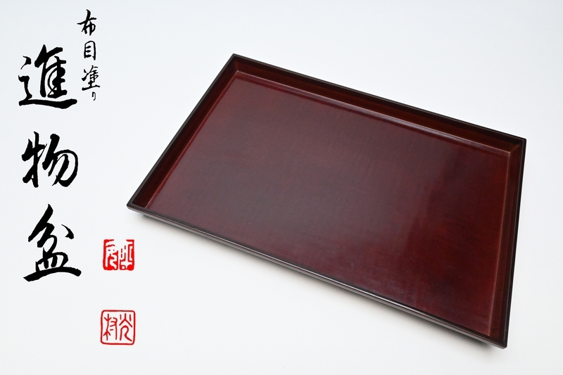 - 京都漆器 ■ 進物盆 布目塗り [光村造り ] 盆 ■ 天然木 茶道具 落款 切手盆 漆器 工芸品 共箱 ■