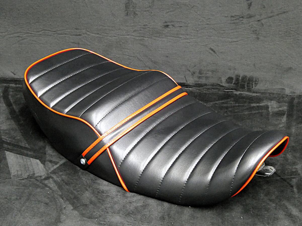> ゼファー400後期 黒赤皮 タックロールシート/ブラック2型ZR400 C5 C6 C7タックロール カワサキ あんこ抜き ローダウン アンコ抜き