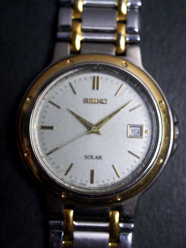 - セイコー SEIKO SOLAR 3針 デイト 純正ベルト V145-0D40 男性用 メンズ 腕時計 z795 稼働品
