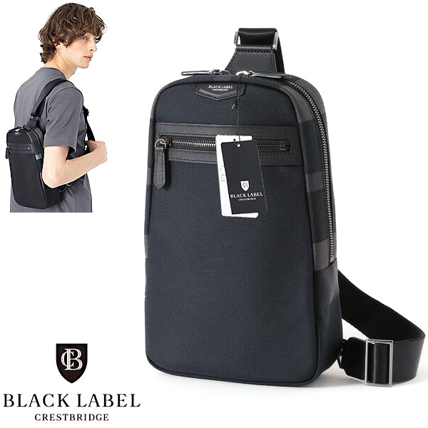 > 定価27,500円 新品 ブラックレーベル クレストブリッジ CBチェック レザー切換え ボディバッグ ワンショルダー黒■BLACK LABEL CRESTBRIDGE