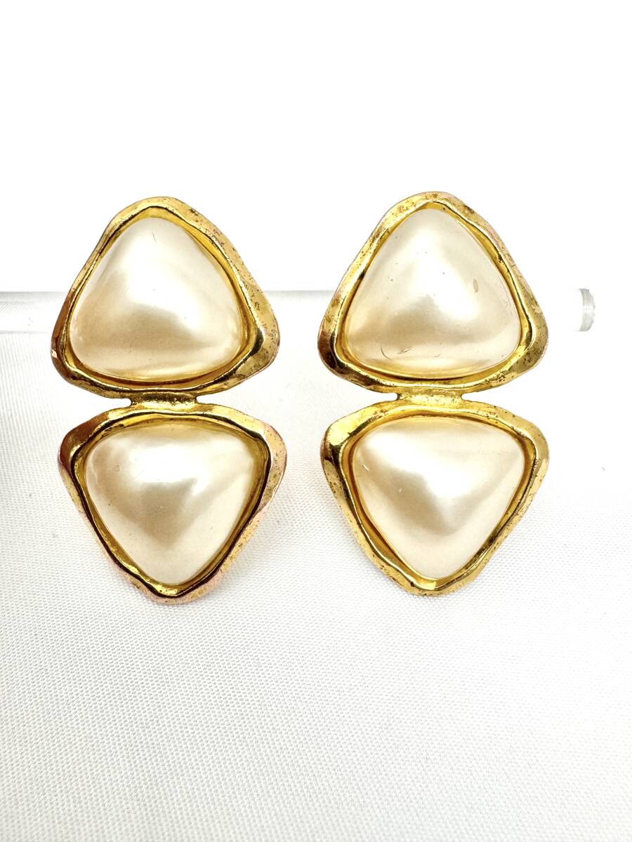 - 7A1905 【本物保証】シャネル イヤリング フェイク パール トライアングル 三角 ハート ゴールド 93P vintage CHANEL