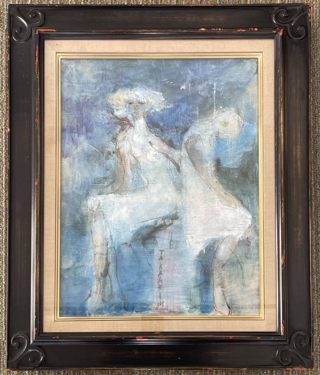 - [真作保証] 八方隆明 待合室「関西汽船別府港」 油絵 二元会常任理事 紫薫賞 日仏展入選 人物画 1981年 サイン有り 額装 R7-0022