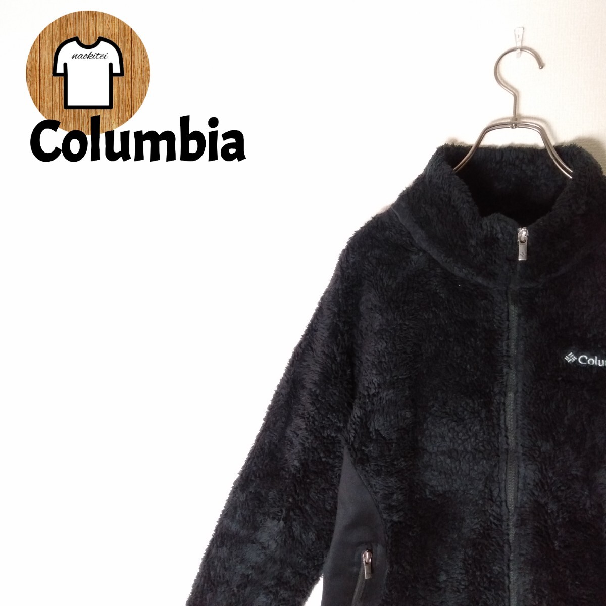 > Columbia ボアフリース M 刺繍ロゴ ラグラン 2ポケット A955 ジッパーフライ ロゴ入りジッパープル 古着 メンズ