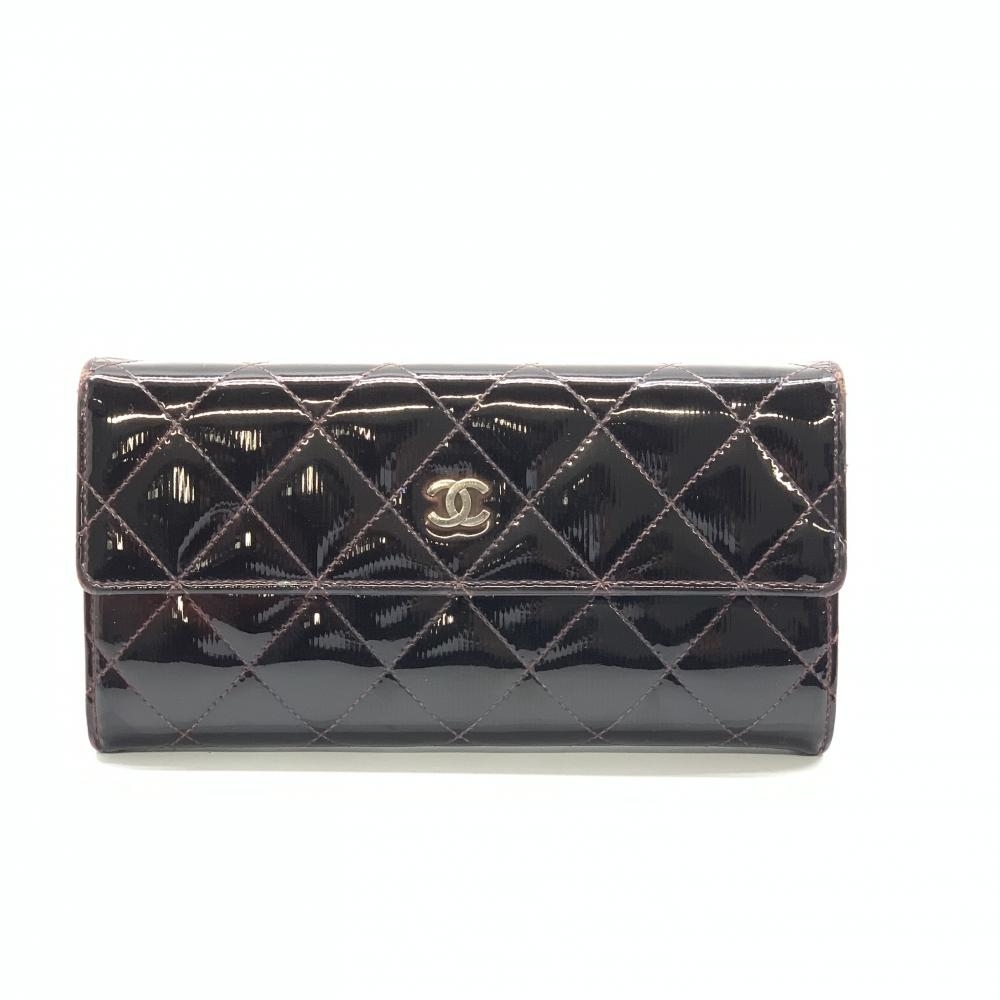 > CHANEL シャネル 二つ折り財布 マトラッセ ココマーク キルティング エナメル ボルドー レッド系 シルバー金具 レディース 管理HS40345