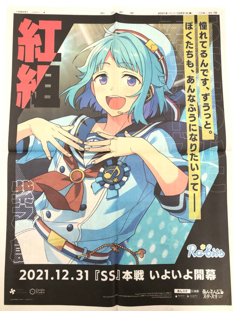 - ♪) あんさんぶるスターズ! ALL OVER JAPAN NEWS PAPER JACK 朝日新聞 2021年12月31日朝刊広告 岐阜 紫之創 [10]