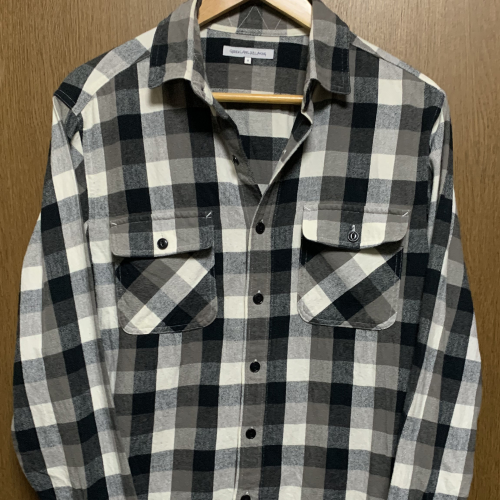> M【GREEN LABEL RELAXOMG|長袖シャツ】ユナイテッドアローズ 白×黒系ブロックチェック