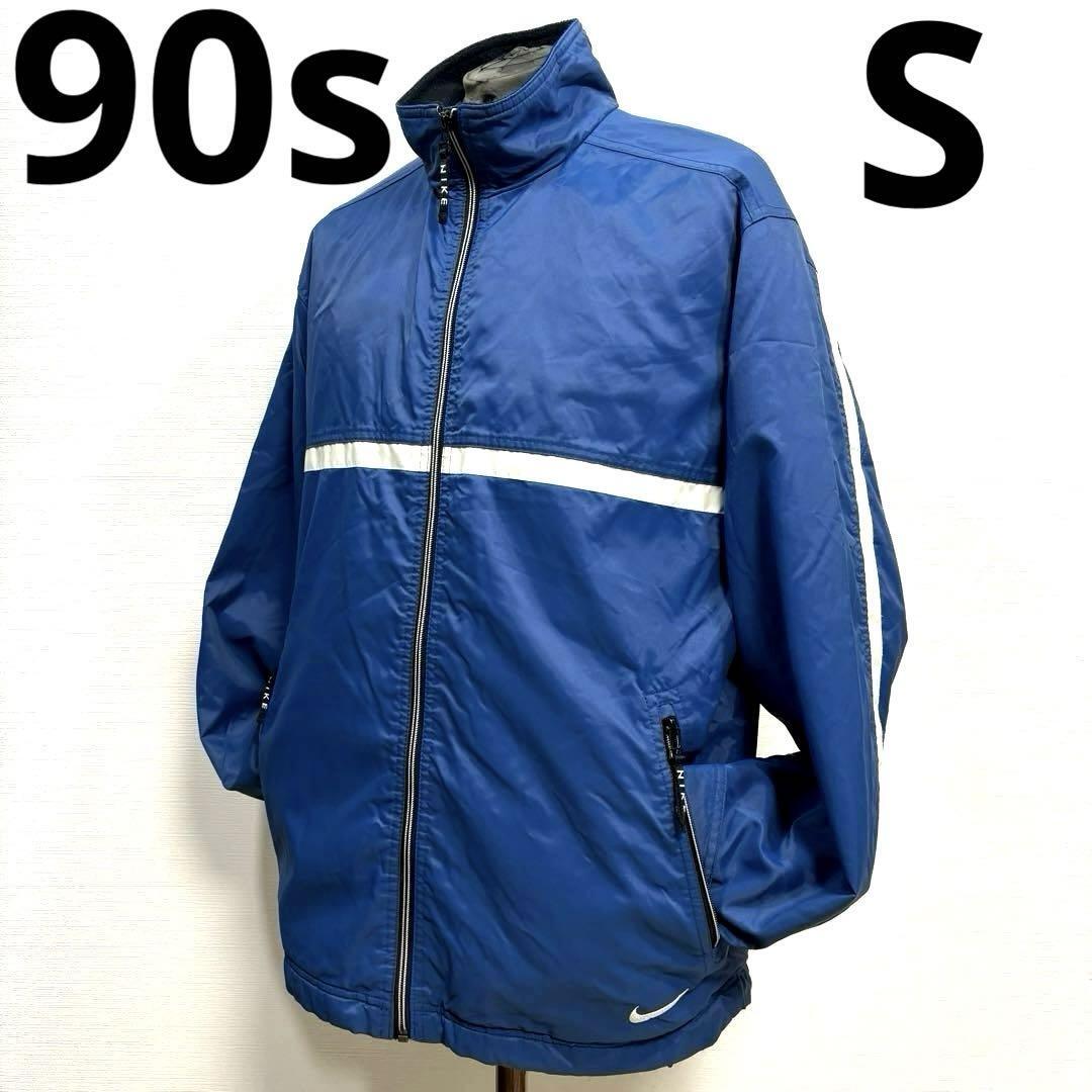 > S 美品 90s NIKE ナイキ 青 白 フルジップ ナイロンジャケット ブルゾン オールド ビンテージ 古着 男子 ゆるだぼ オーバー ビッグ y2k 00s