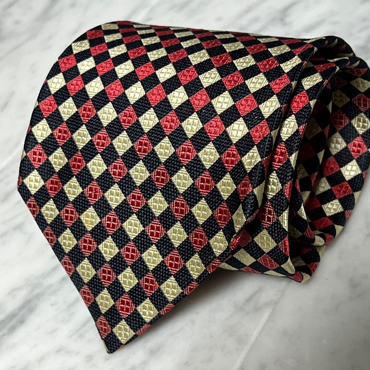 - 【美品】 999円~ タケオキクチ ネクタイ ブロックチェック柄 マルチカラー 総柄 (B11)