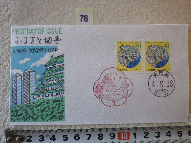 - FDC ふるさと切手 大阪城とビジネスパーク・大阪 2貼2消 解説書有 松屋●76●同梱大歓迎