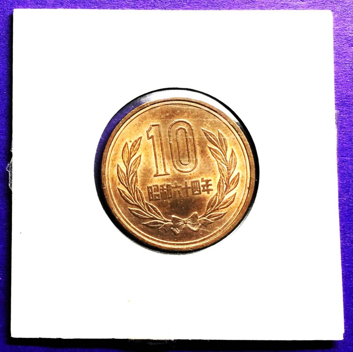 - 1229【手替わり・未使用・極美】 昭和64年 10円青銅貨 階段の左右手すりが上部と一体化、屋根先鋭角(61年後期型)