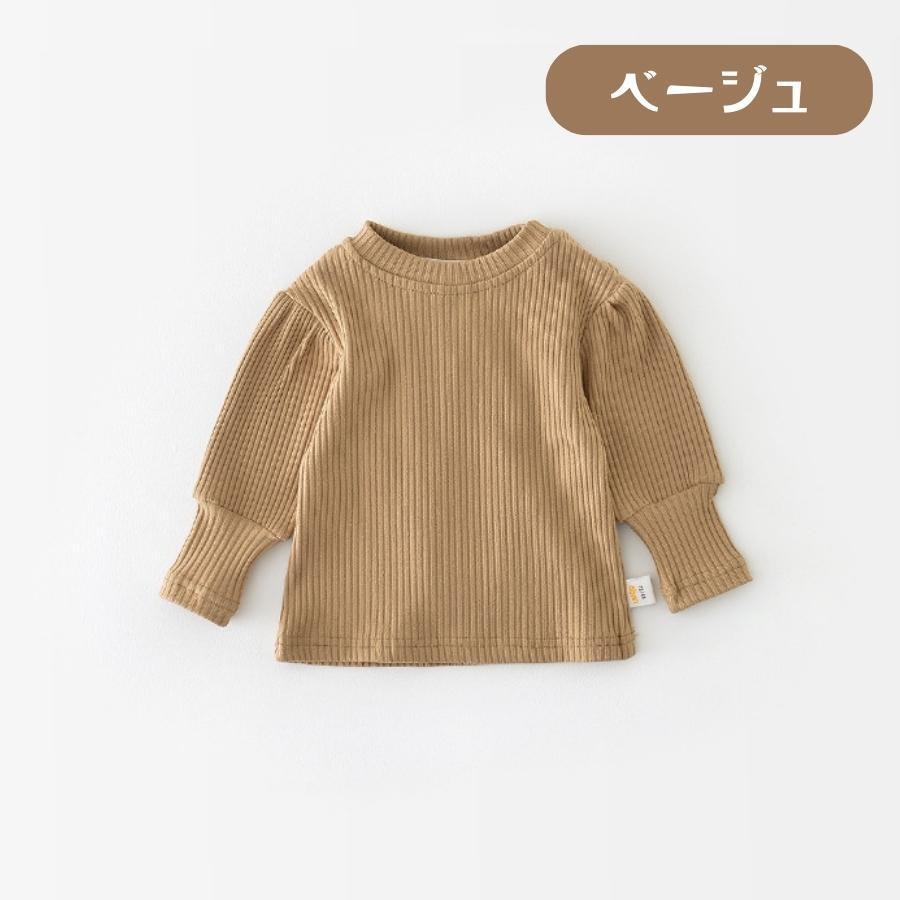 > ロングリブ 柔らか素材 長袖Tシャツ カットソー ニット カジュアル キッズ服 ベビー服 女の子 ガールズ 韓国子供服 (90, ベージュ)