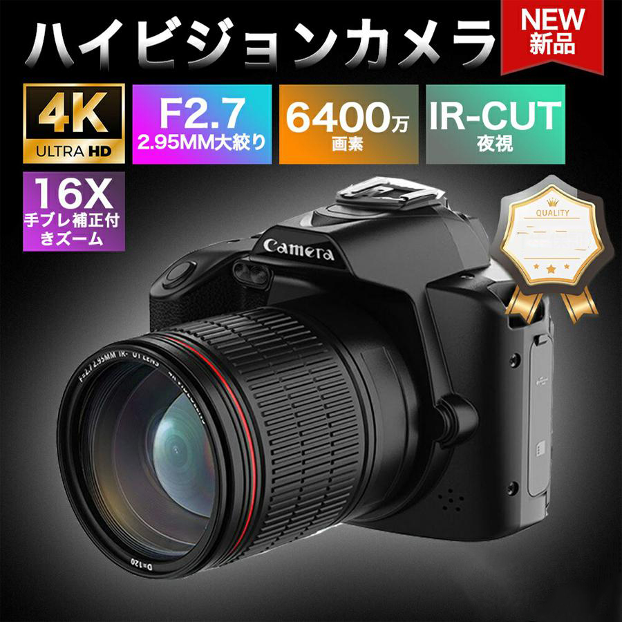 - デジタルカメラ 一眼レフ 4K 6400万画素 ビデオカメラ IRナイトビジョン 16倍ズーム 電子手ブレ補正 F=2.7大絞り 3インチ画面 WIFI対応