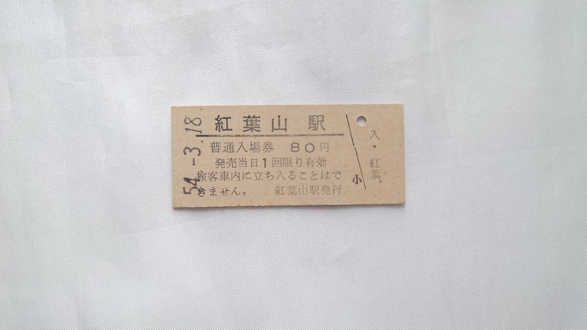 - △国鉄北海道廃止駅△紅葉山駅80円入場券△B型硬券昭和54年