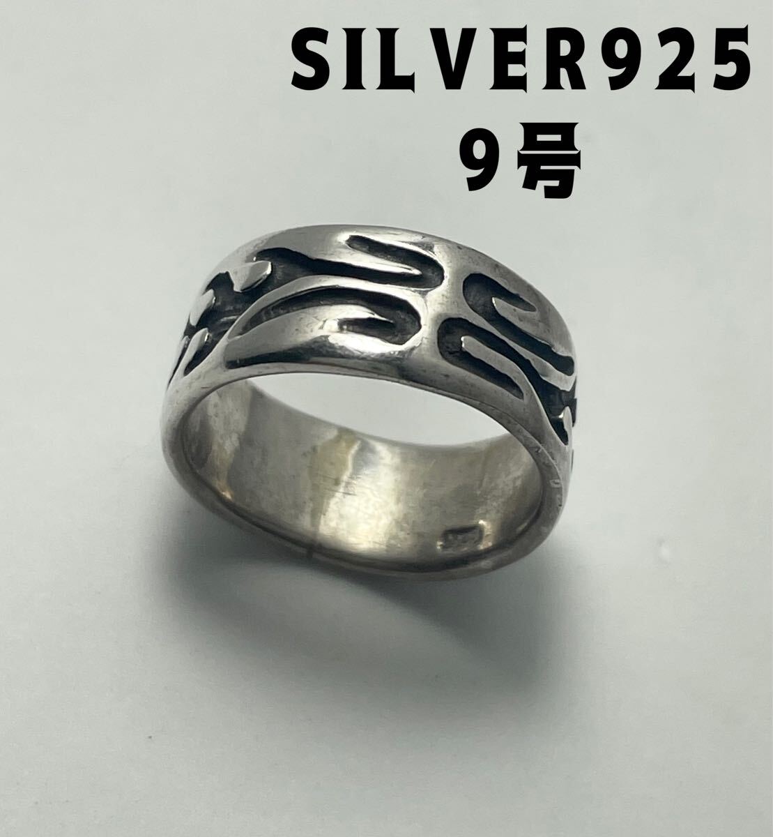- YQ51gきs トライバル シルバー925リング9号銀指輪ピンキー ユニセックス平打ち柄リングき SV925 シルバー925 指輪 アクセサリー デザイン