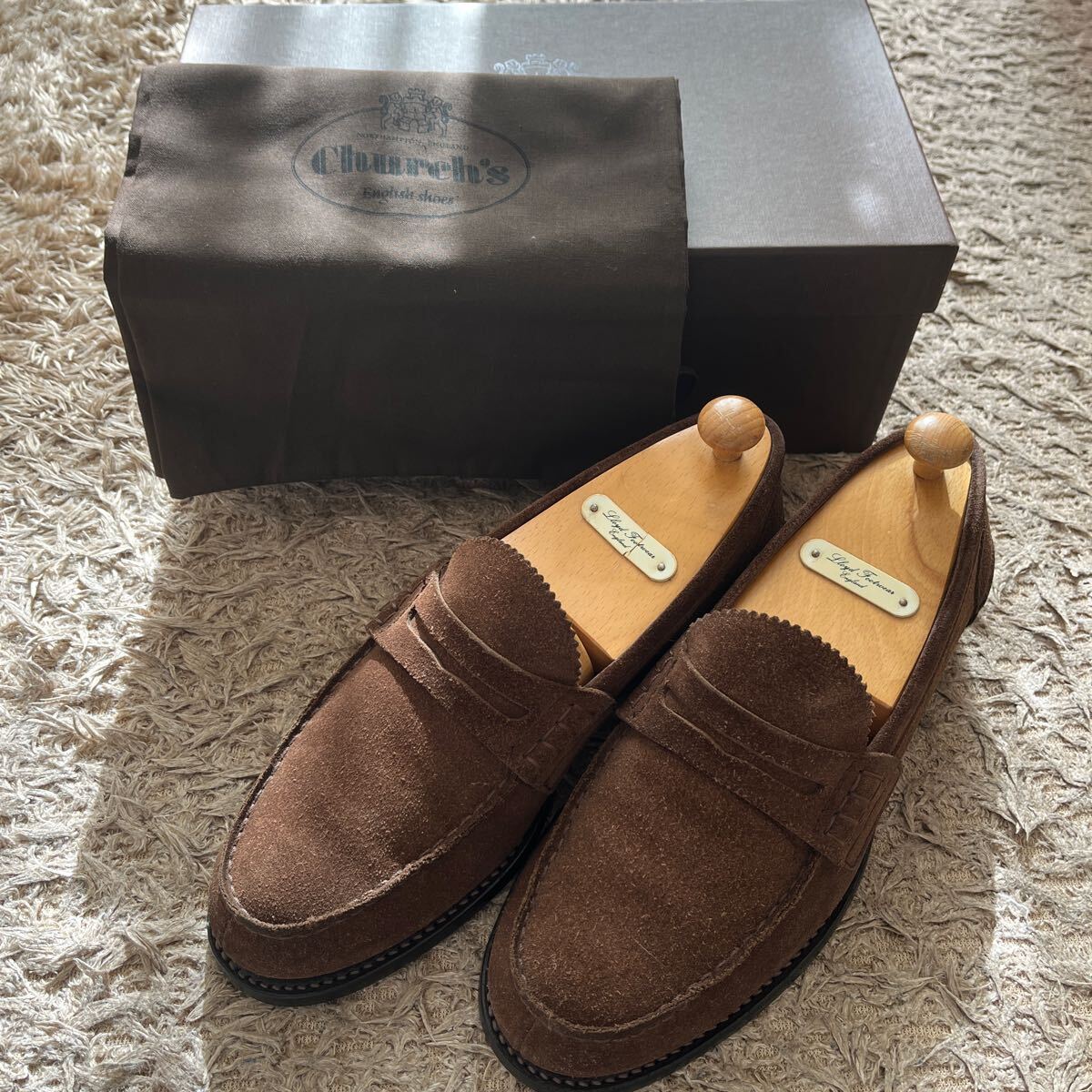 - 美品 箱 シュー袋付き チャーチ church'sローファー スエード ブラウン 革靴 コインローファー PEMBREY 4大都市 8 F26.5 定価15万