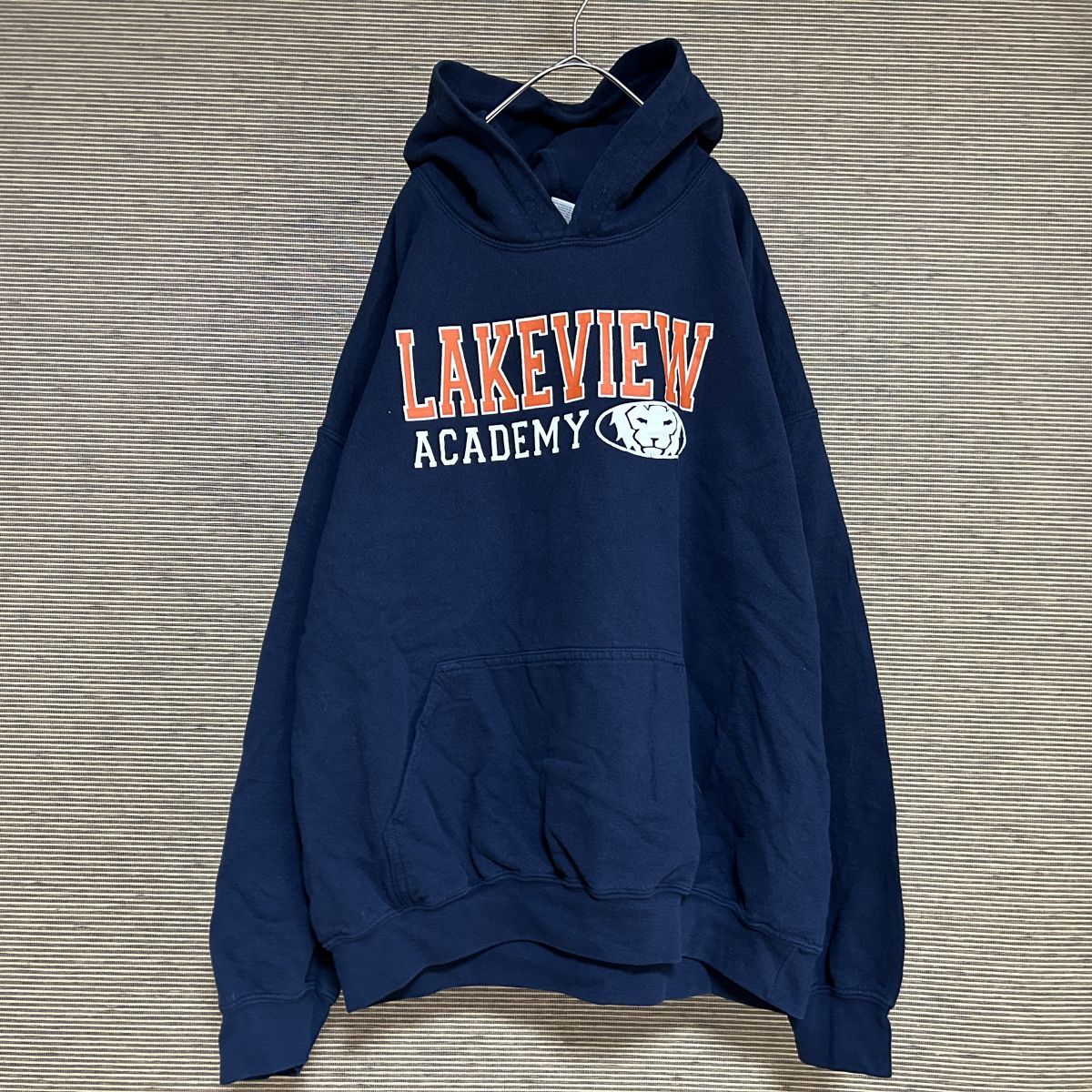 - ギルダン パーカー ネイビーカレッジロゴ レイクビュー太アームアニマルF1 古着 入手困難 激レア 希少 人気 アニマル ライオン