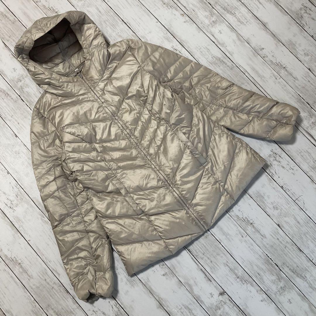 - 美品 超軽量 ジャンパー L 光沢 フード付き アウター 上着 ノームコア 古着