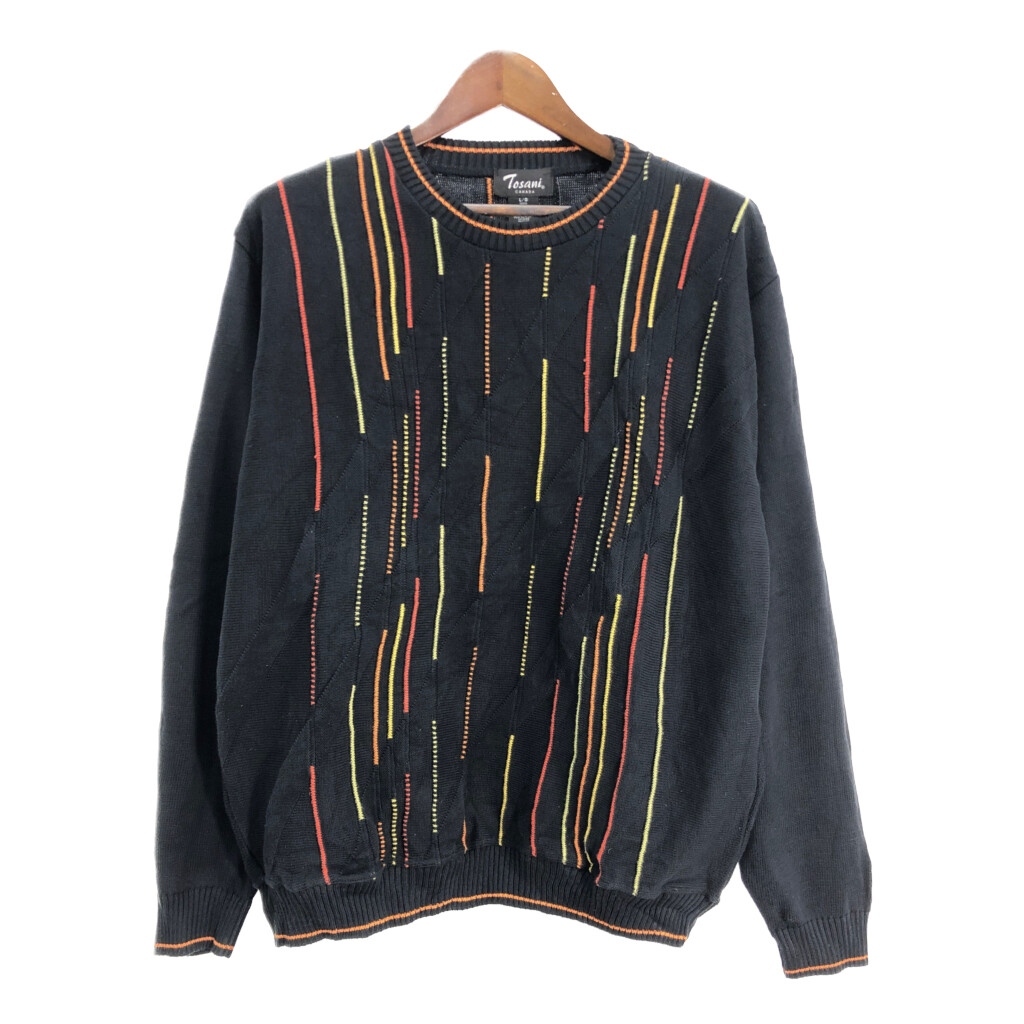 - カナダ製 Tosani 3Dニット コットンセーター 総柄 ブラック (メンズ L) 中古 古着 S9325