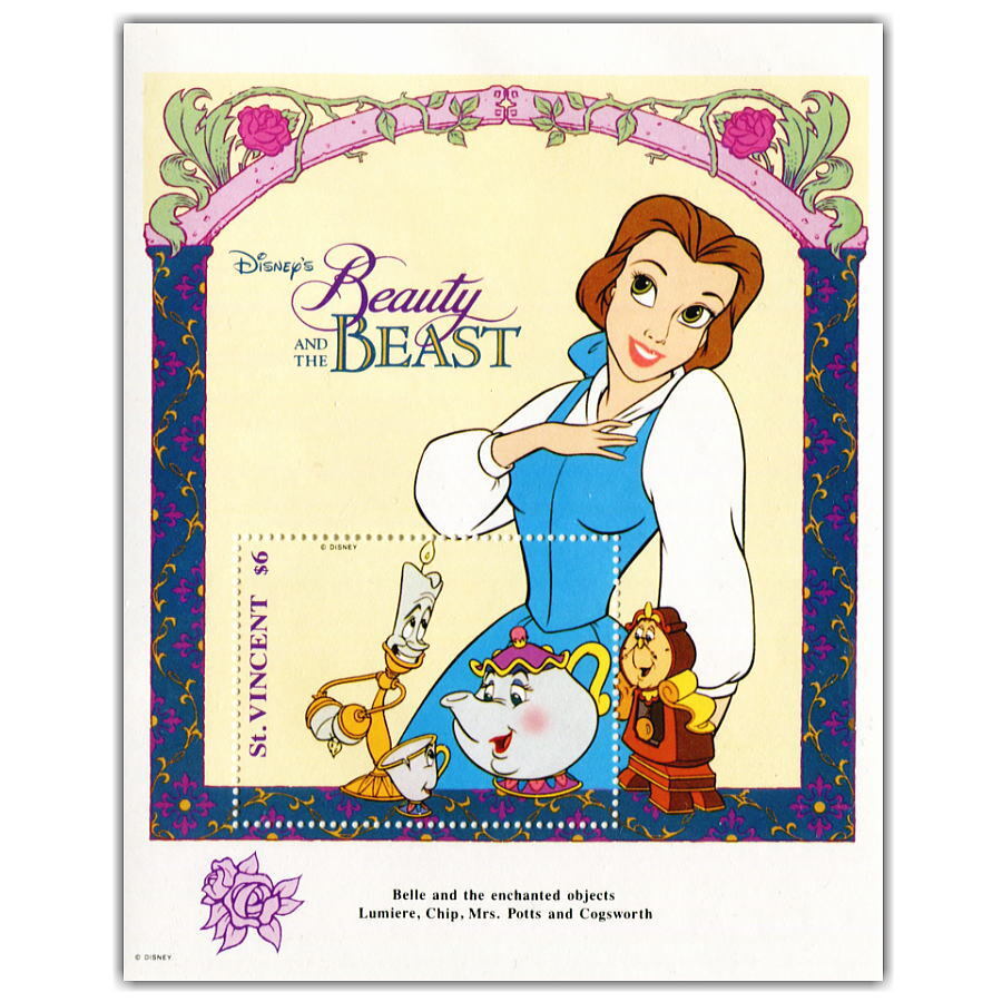- ディズニー 美女と野獣 切手小型シート(ベル) 発行国St.Vincent 1992年発行 未使用